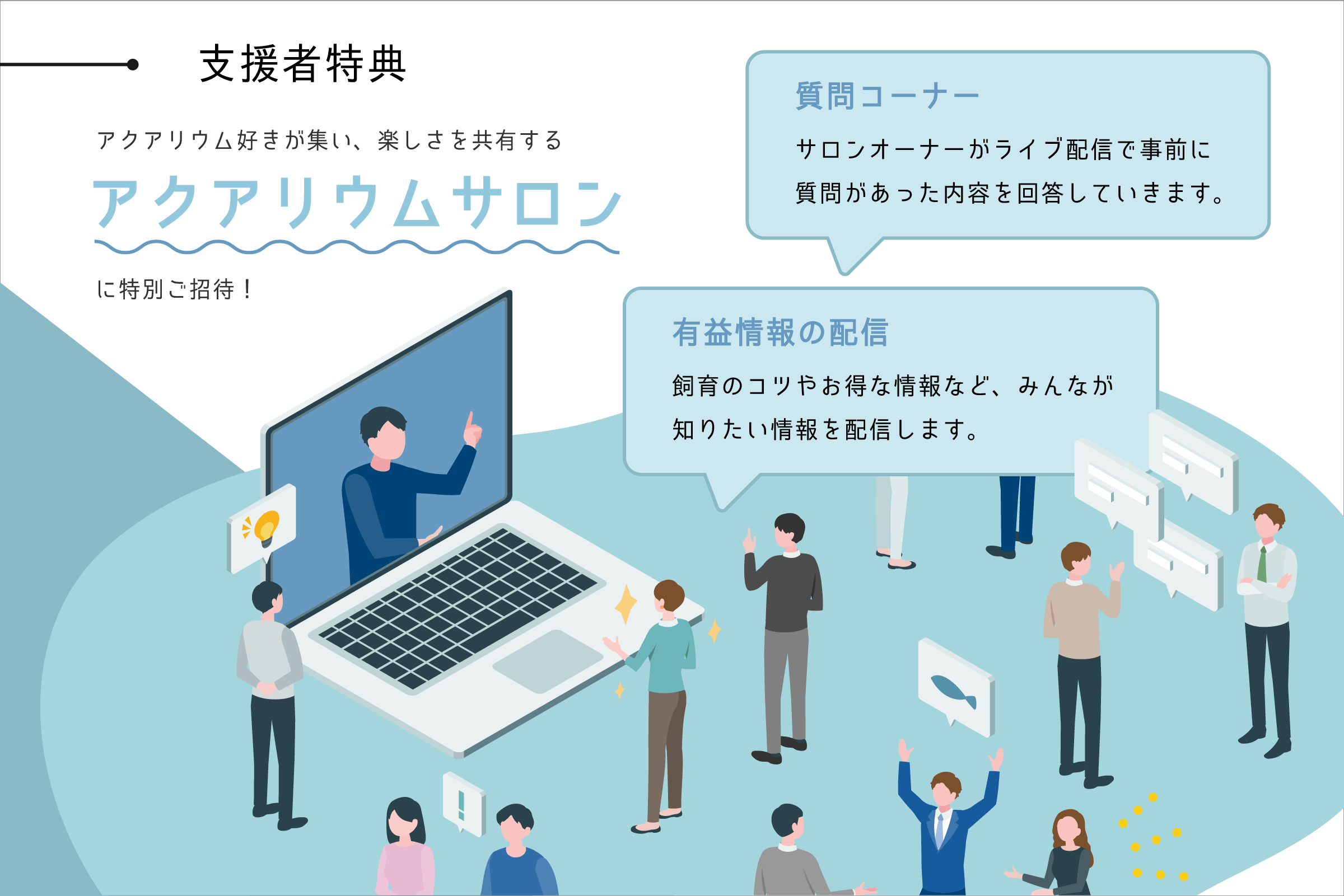 そこで、今後そのようなアクアリウム好きを集めたオンラインサロンを開きたいと思っています。その名も「アクアリウムサロン」。今回の「アクアリウムコンサルティング」のほか、アクアリウムにもっと詳しくなるコンテンツの配信やコミュニティを作ります。