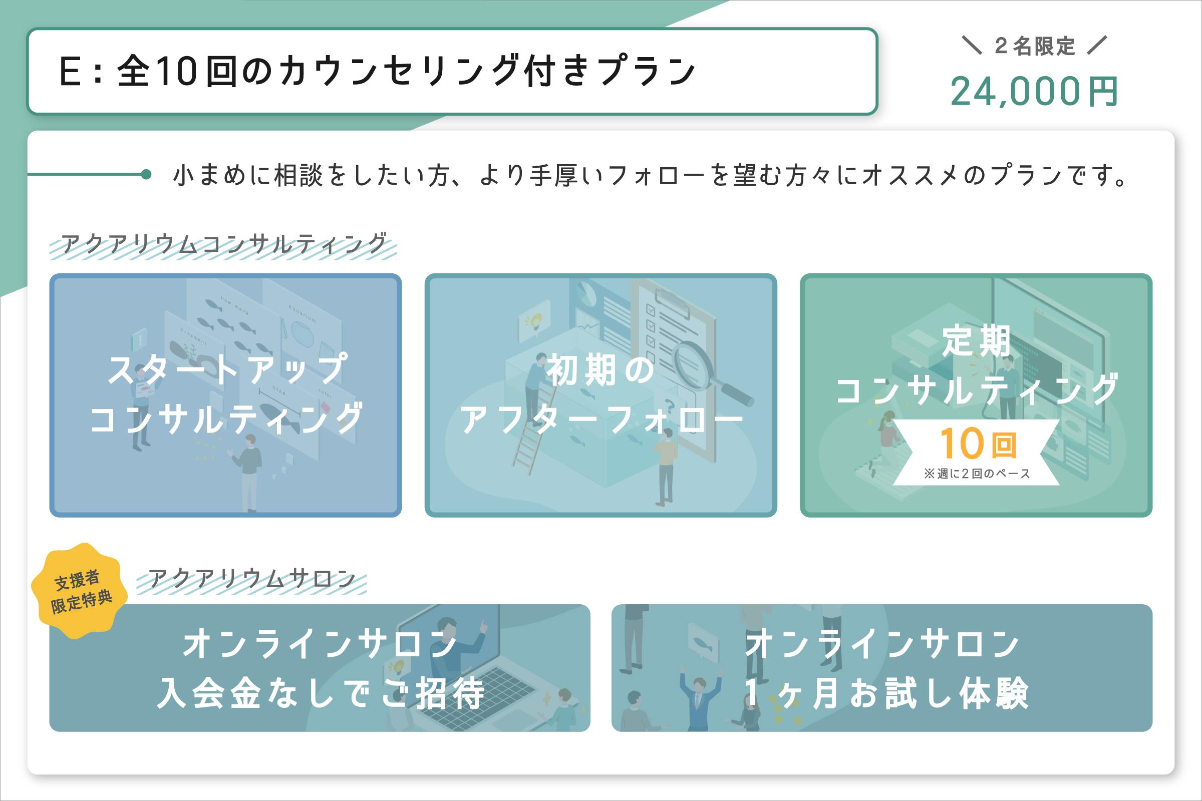 【E:全10回のカウンセリング付きプラン ※Bプラン+コンサルティング10回】24,000円 2名限定