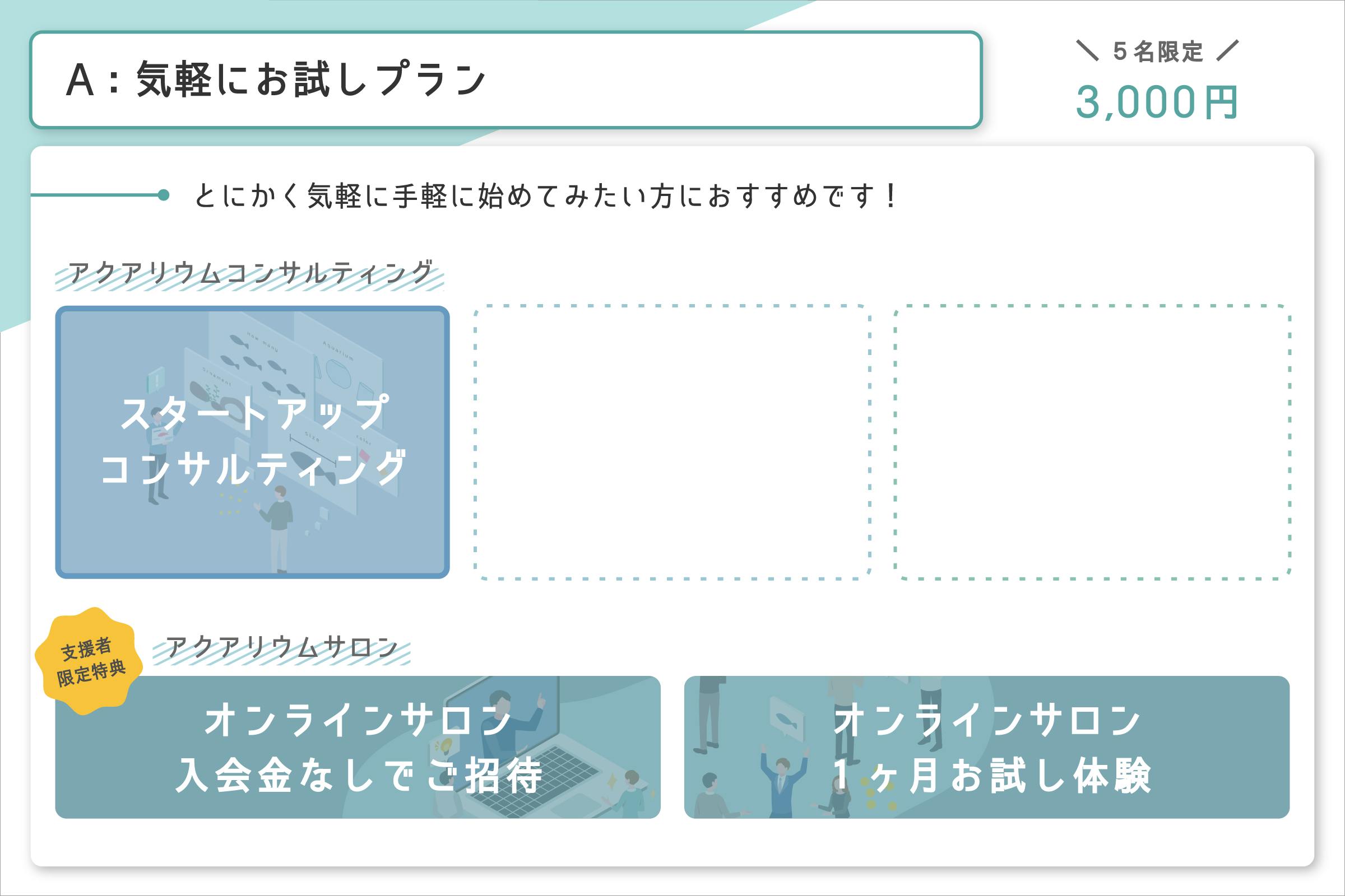 1.「アクアリウムコンサルティング」の「①スタートアップコンサルティング」のみのプラン