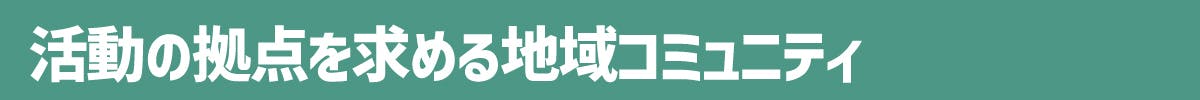 例えば、地域のコミュニティもメンバー同士の会合やイベントを開ける拠点がないと活動がスムーズにいきません。しかし、普通に賃貸物件を借りると収支が合わないようなケースも多々あります。実際に、条件の合う物件を探しているものの見つからないというお声を多く聞いています。
