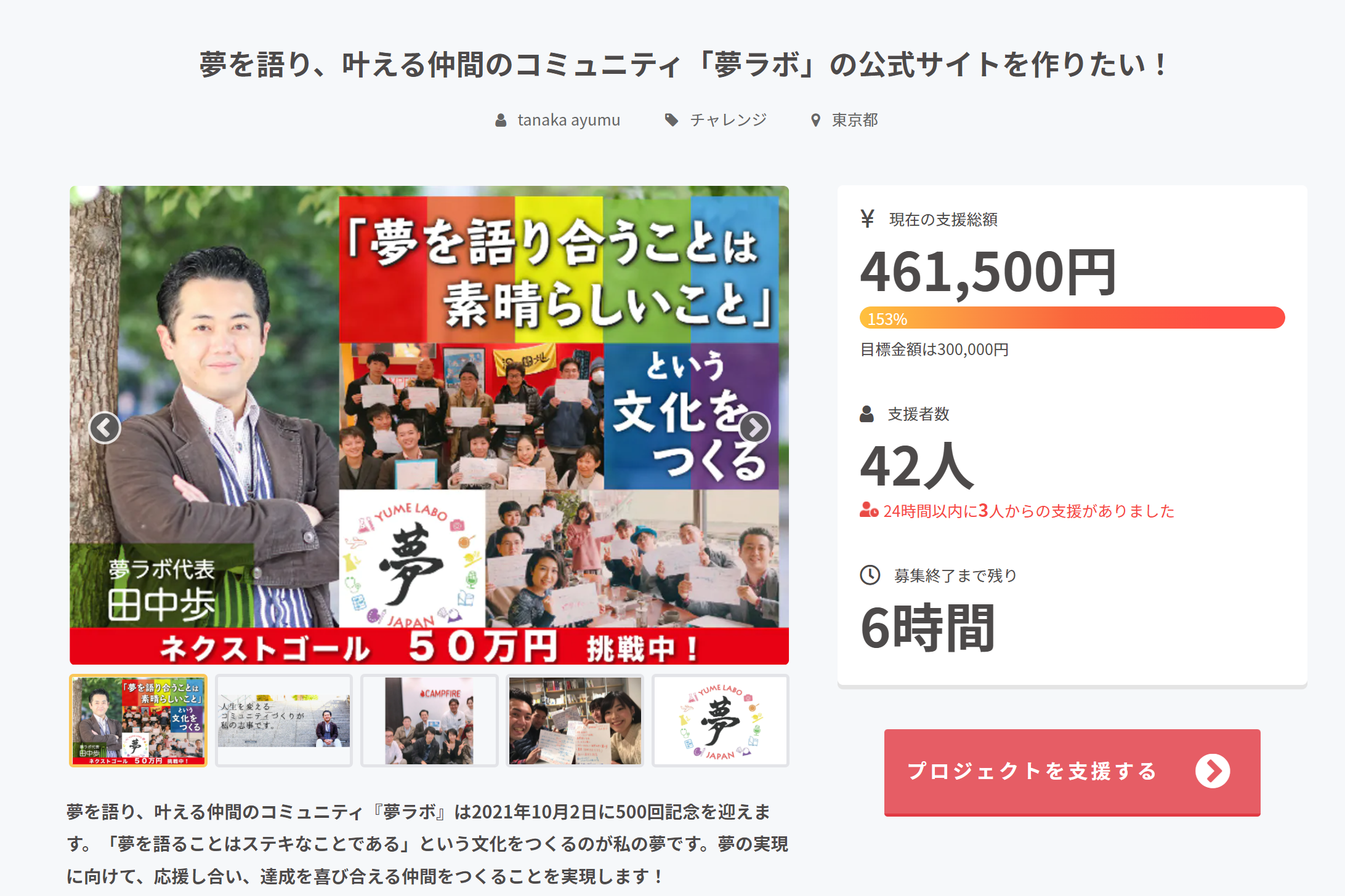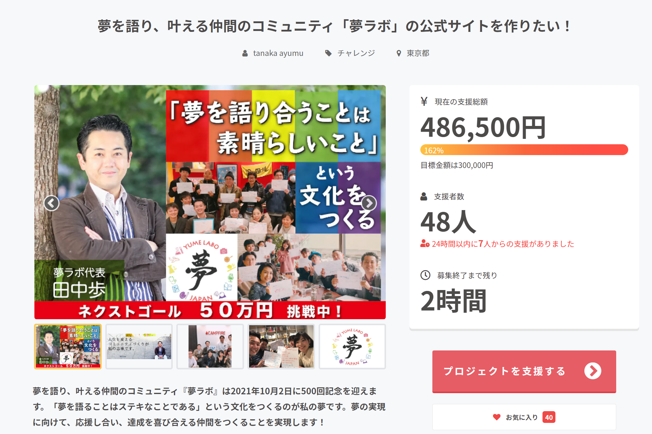ご支援いただいた資金は、夢ラボ公式サイトの作成費・CAMPFIRE手数料などの諸経費として大切に活用させていただきます。
