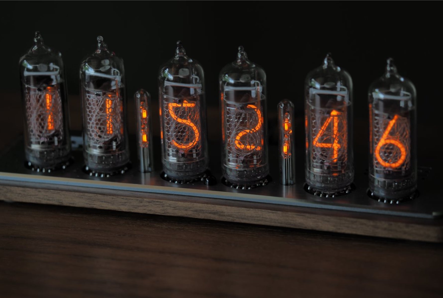ニキシー管と称して販売しているものがございますが、こちらの時計は本物のニキシー管です。