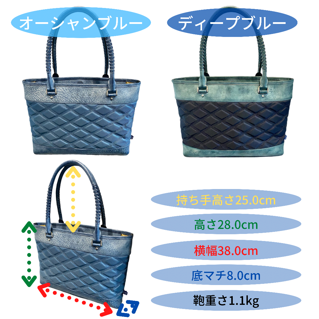 上記の2色展開で、持ち手は肩掛けが可能な長さとなっております。