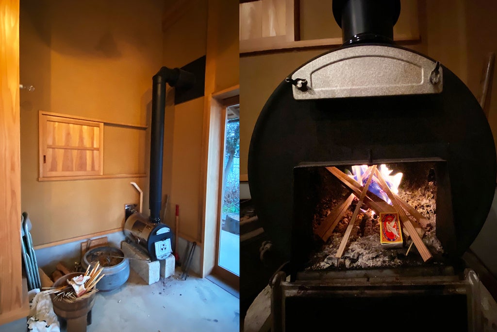 新たに薪ストーブ、薪風呂を設置。薪は地域や人のつながりで、処分する材を調達することができます。