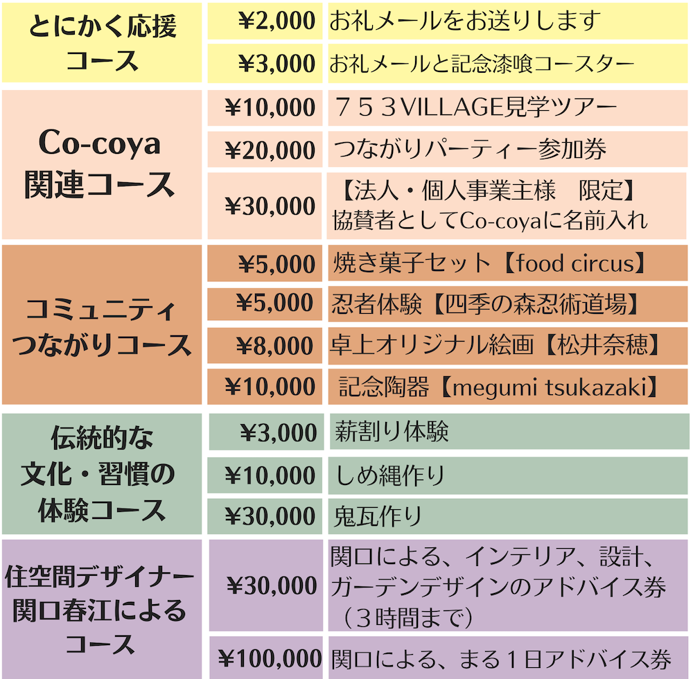 各リターンの詳細は、ページ右側(スマートフォンの方はページ下部)にあるリターン表示をご覧ください。
