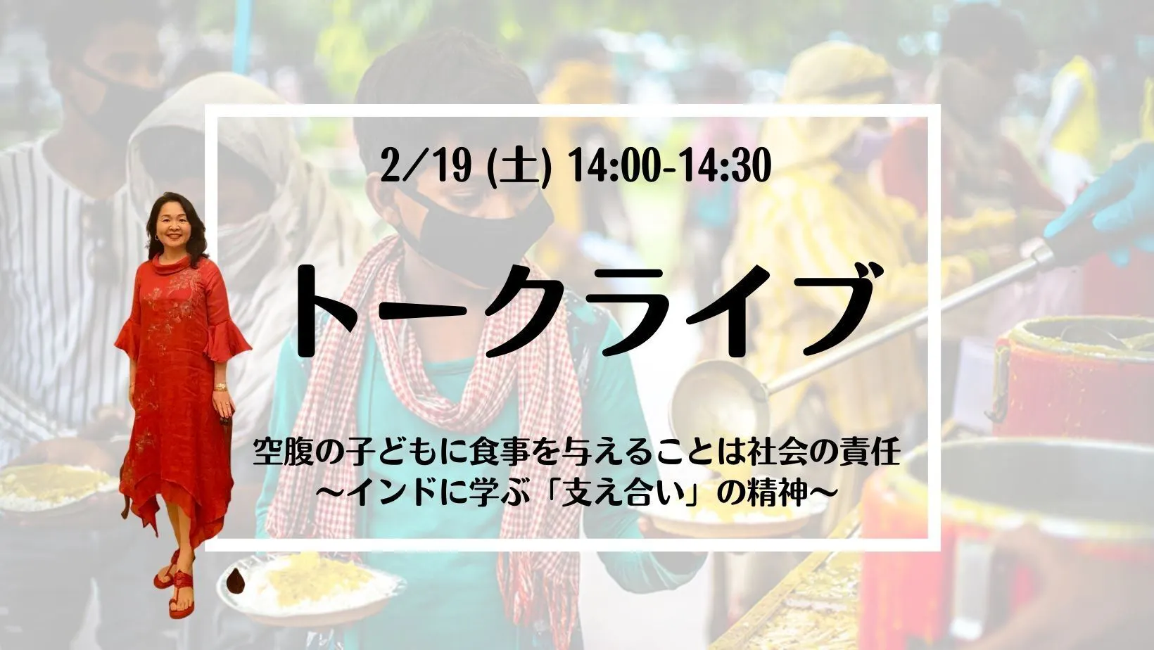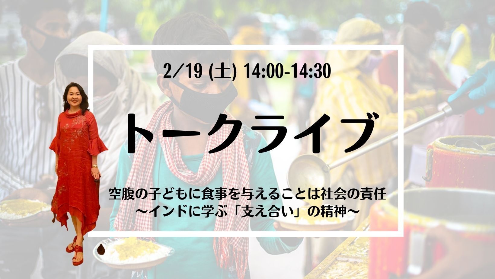 インド料理やヨガ、インド映画がお好きな方々の中には、わたしたちと同じような思いを持たれている方もいらっしゃると感じています。このイベントは、そのような方と一緒にインドから学びながら食糧支援ができる”Give and Take”の場にできたらと思い、企画しました。