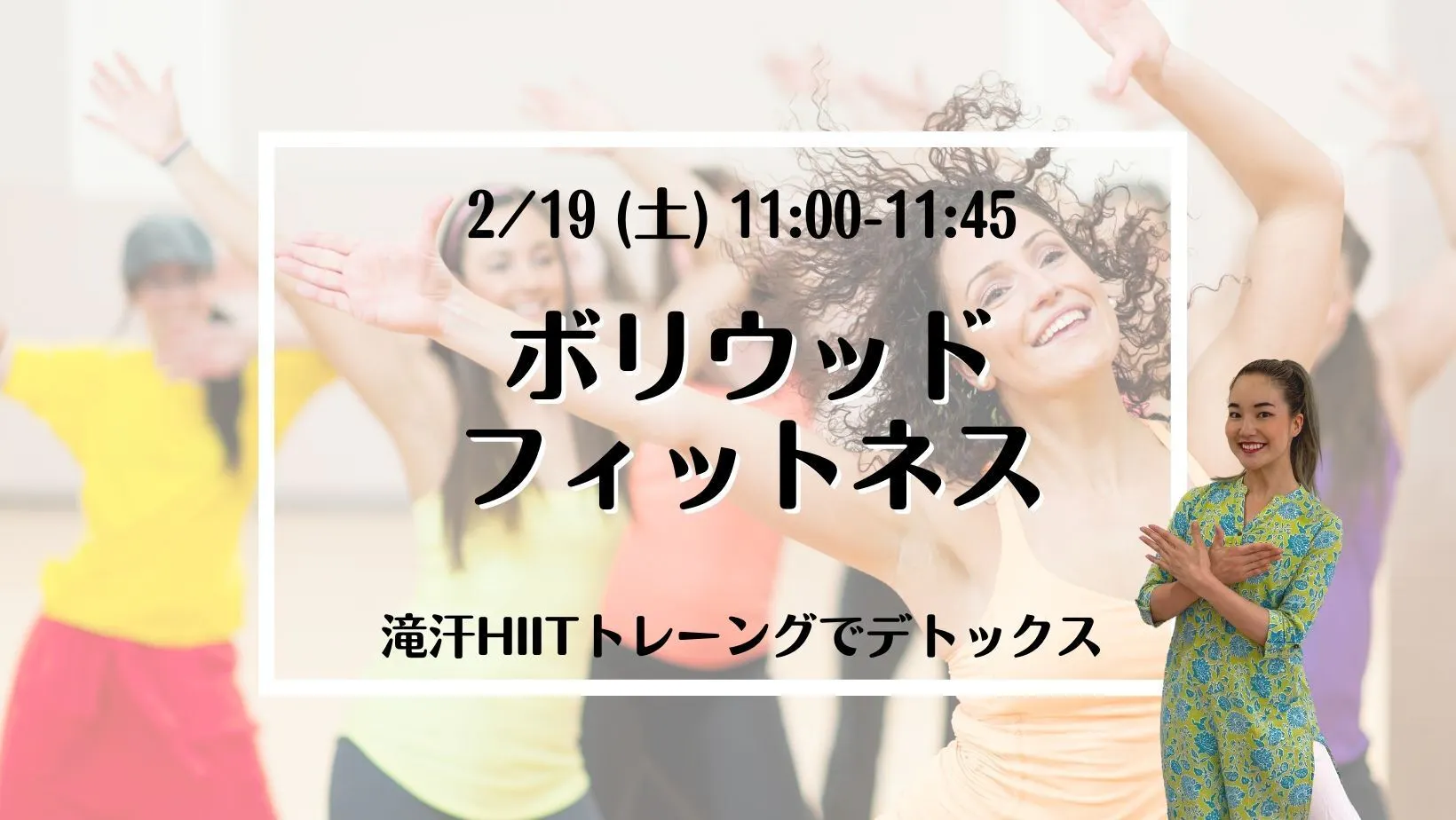 楽しいインド映画の音楽に合わせて行うダンスフィットネス。ハイインパクトとローインパクトの動きを交互に取り入れ、心拍数を適度に保ち汗をしっかりかくことができます。ダンス初心者も大歓迎。マンションにお住まいの方もご参加できるよう、省スペースで騒音を気にしないでジャンプの少ない動きを組み合わせて踊ります。