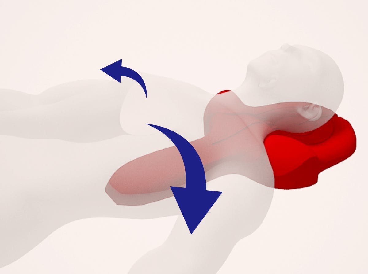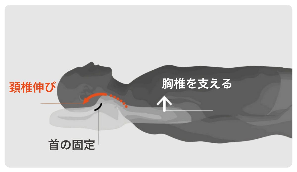 さらに、通常の枕とは違い後頭部が落ちるため、あごが下がらず呼吸が楽になるよう気道を確保しやすい形状。