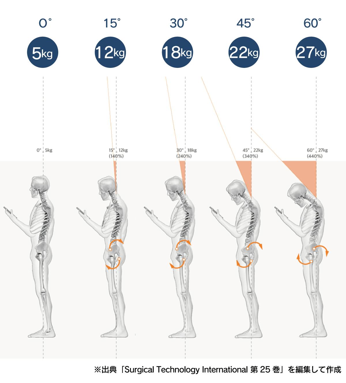 ■ スマホ姿勢はこんなにも首、肩、背中に負荷が!