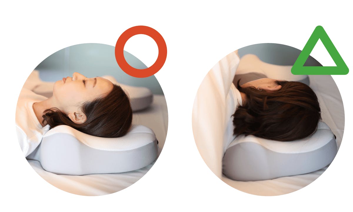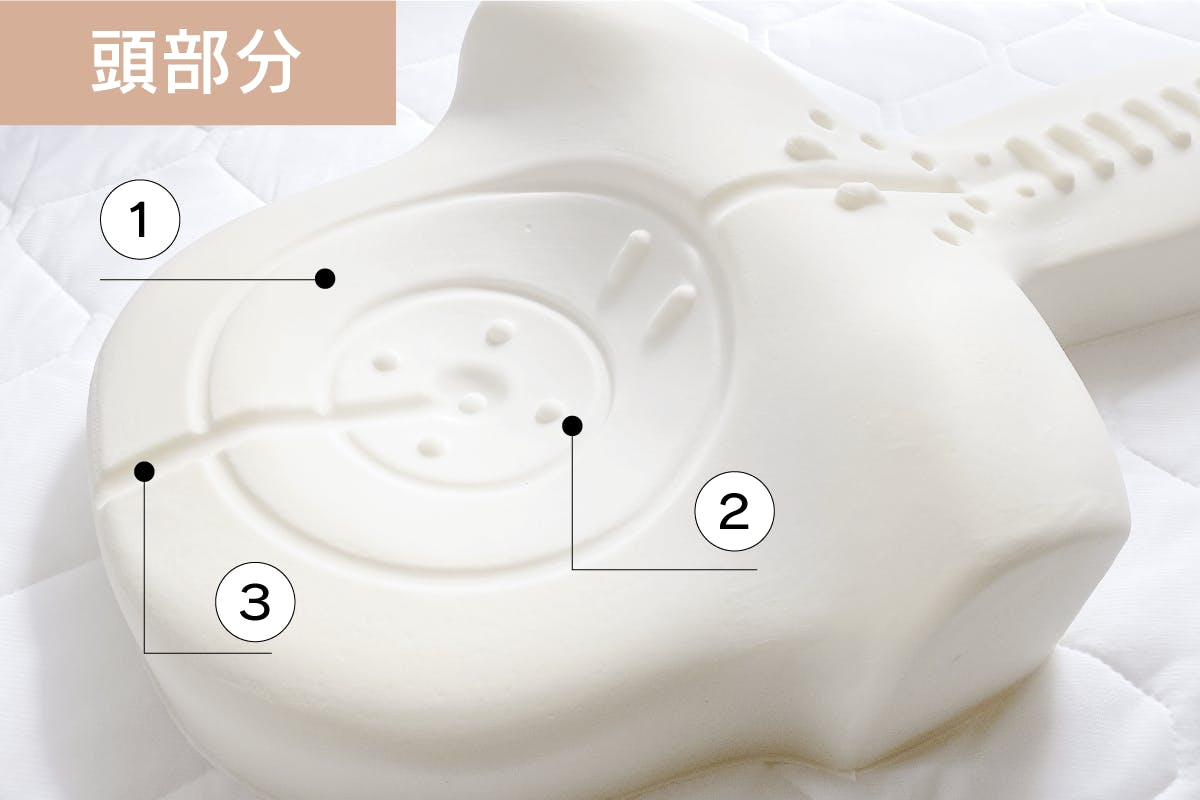 ① 前に出た頭を正しい位置に導くお椀型。やさしく頭を包みます。
