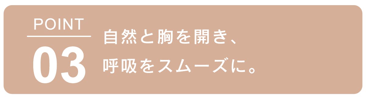 背中が伸ばされ自然に胸が開き、酸素を取り込みやすい姿勢を維持します。