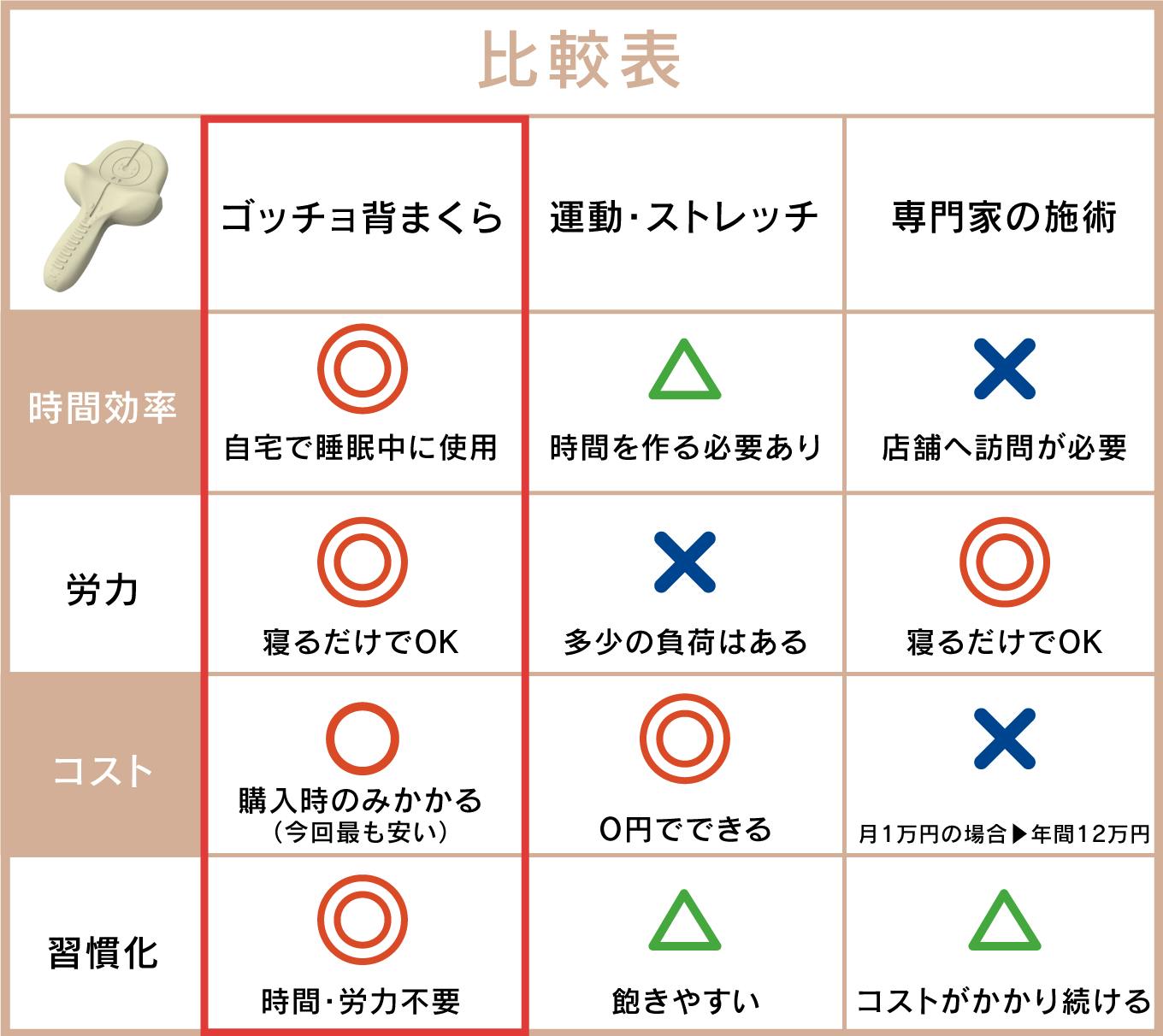 ゴッチョ背まくらは、寝る時に使うだけ!わざわざ、そのために時間を取るわけではないのでどんなに忙しい方でも大丈夫。
