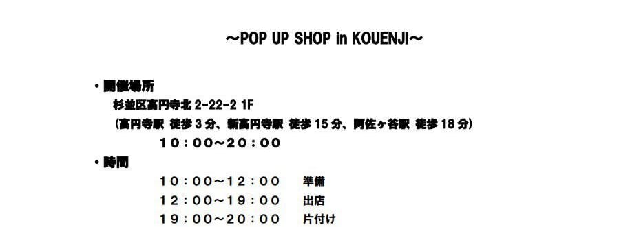 11月~12月末 ポップアップショップ開催・リターン品のお届け