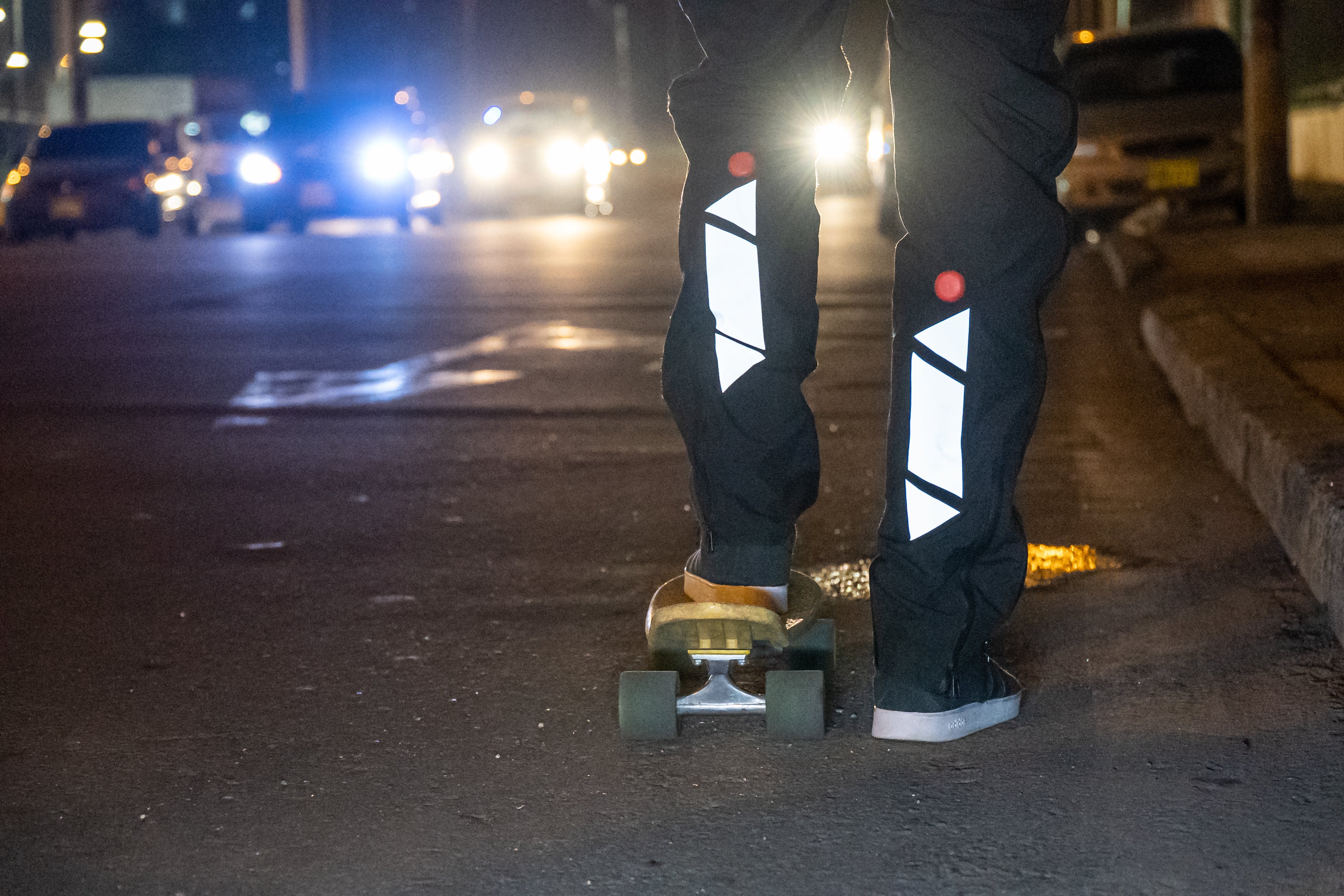 手首・腕・背中の3箇所に反射材が付いているので、暗い時間帯でもしっかり目立ちます。