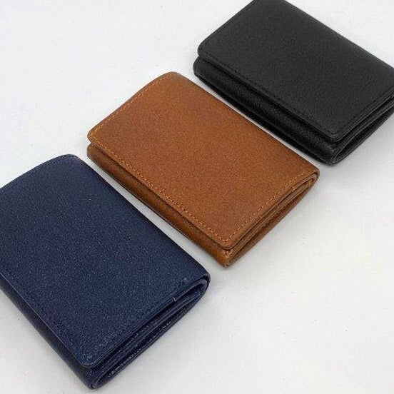 三つ折り財布でありながらコイン、カード、紙幣もしっかり収納できる財布に仕上げ、ポケットや手のひらに納まるサイズ感でありながら、長財布なみの機能が備わっています。あらゆる収納物をワンアクションで取り出せるので使い易さは抜群です。
