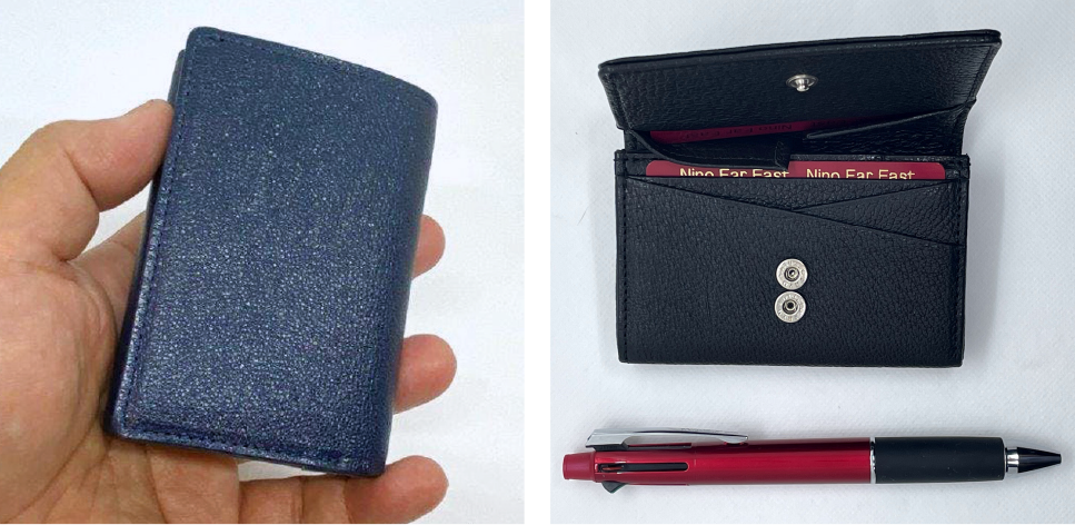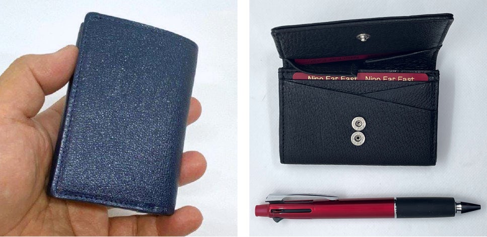 ①「サステナブル・ピッグスキン」を使った二宮五郎商店の新作ミニウォレット