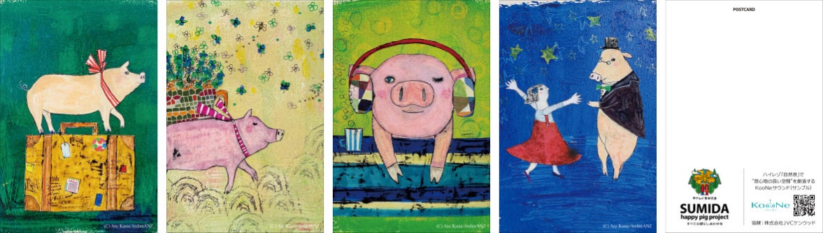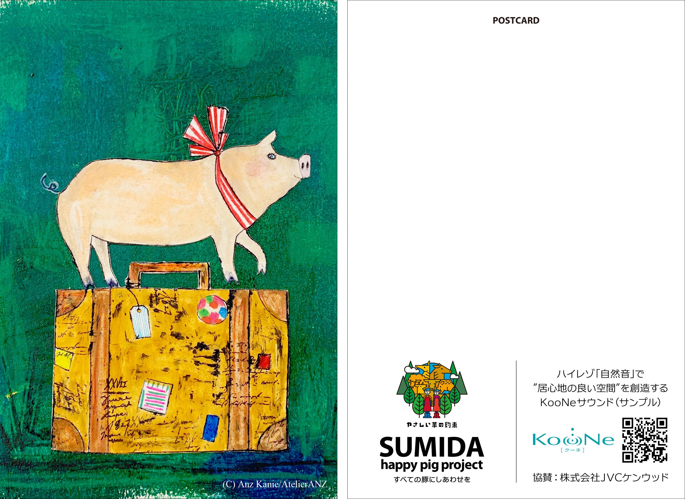 ・宛名面からはクラウドファンディングのご支援で実施予定の豚への自然音を試聴できるQRコード付き。ぜひ試聴ください。