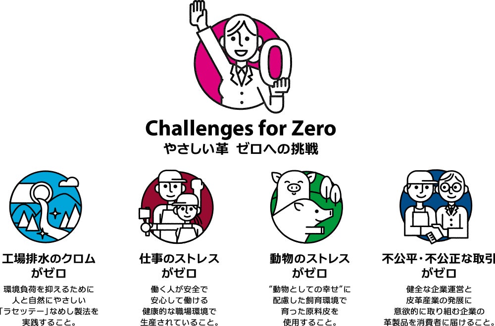 とはいえ、ストレスのない環境で育てられた豚の革の流通は非常に限られています。月産100万頭分と言われている中で、やさしい革の占める割合は1%に満たない状況です。一般社団法人やさしい革だけがこの4つのゼロに取り組むのではなく、より多くの畜産農家の方、そして皮革から靴や鞄、衣類、家具、日用品、文具などを作り出す多くの企業や団体の方が動物福祉に配慮した革を選択し、製品にすることが必要です。