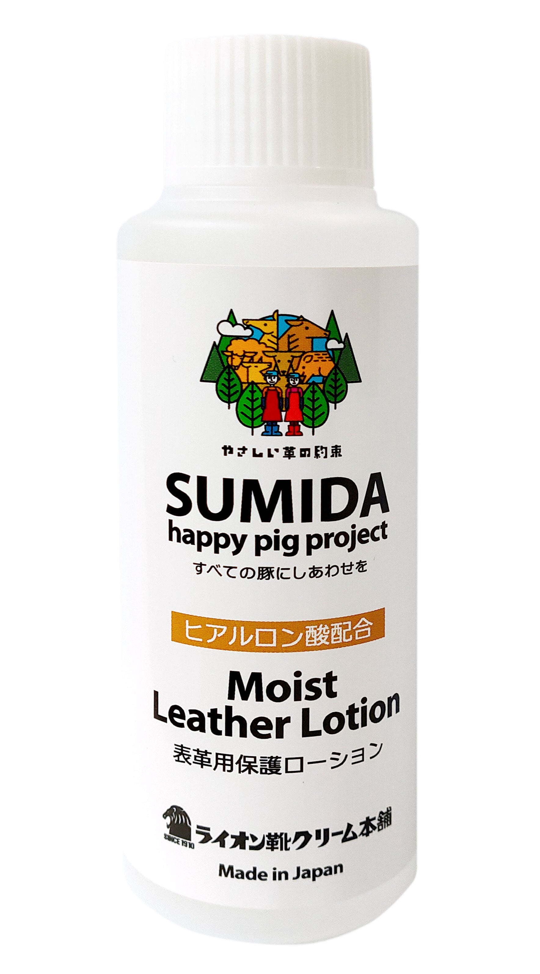 谷口化学工業所は、創業明治43年の日本最古の靴クリームメーカーです。サステナブル・ピッグスキンのミニウォレットをずっと大切に使うためには、定期的なお手入れが必要です。今回のクラウドファンディングのために特別に作った「Moist Leather Lotion(モイストレザーローション)」は、全ての方がレザーケアをお気軽に楽しめるように開発した商品となります。革小物に使用される革は、育てる愉しみと、長くご使用頂けるという点でとても優れた素材となります。