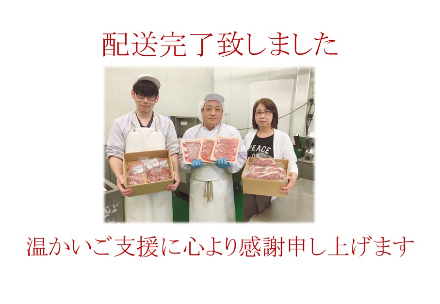 2021/12/01 08:10応援してくださった大切な皆様へ本プロジェクトは11月30日終了を迎えました。総支援額1,203,700円 総支援者数178名様と、多くの方よりご支援を頂く事が出来ました。皆様のおかげで、沢山の牛肉を廃棄処分から救う事ができました!お力添えを頂き誠にありがとうございました!そして、温かい励ましのお言葉をくださった事が、何よりの励みとなりここまで頑張る事ができました。重ねてお礼申し上げます。リターン品発送について今週中にご支援いただきました皆様へのリターン品の発送準備へと入りたいと思います。皆様が楽しく温かなお食事時間をお過ごしして頂けるよう願いと感謝の気持ちを込め、商品発送まで気を引き締め取り組んでいきたいと思いますので引続きどうぞよろしくお願い致します。株式会社スティル代表取締役 佐藤仁一朗 もっと見る