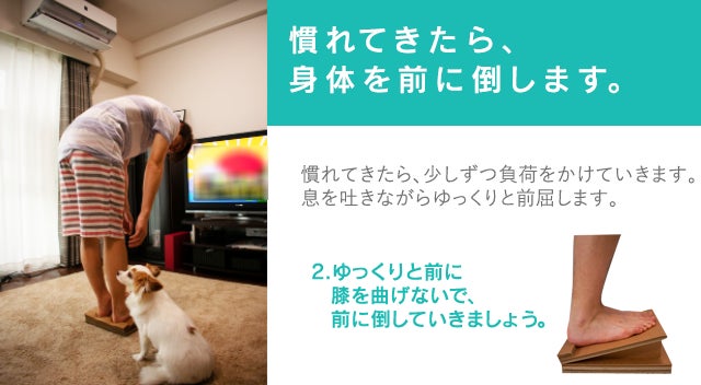 ストレッチボードの傾斜は最初のうちは立つだけでも充分筋肉を伸ばします。