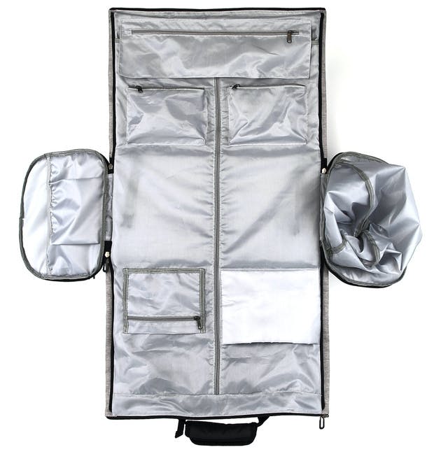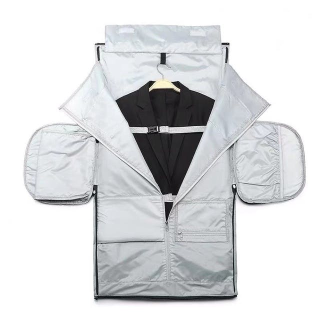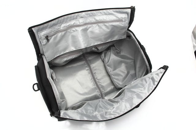 「トラベルダッフルバッグ」は全て展開することが可能です。スーツなどの衣類を収納できるようにデザインされているので、畳まずに収納することが可能です。