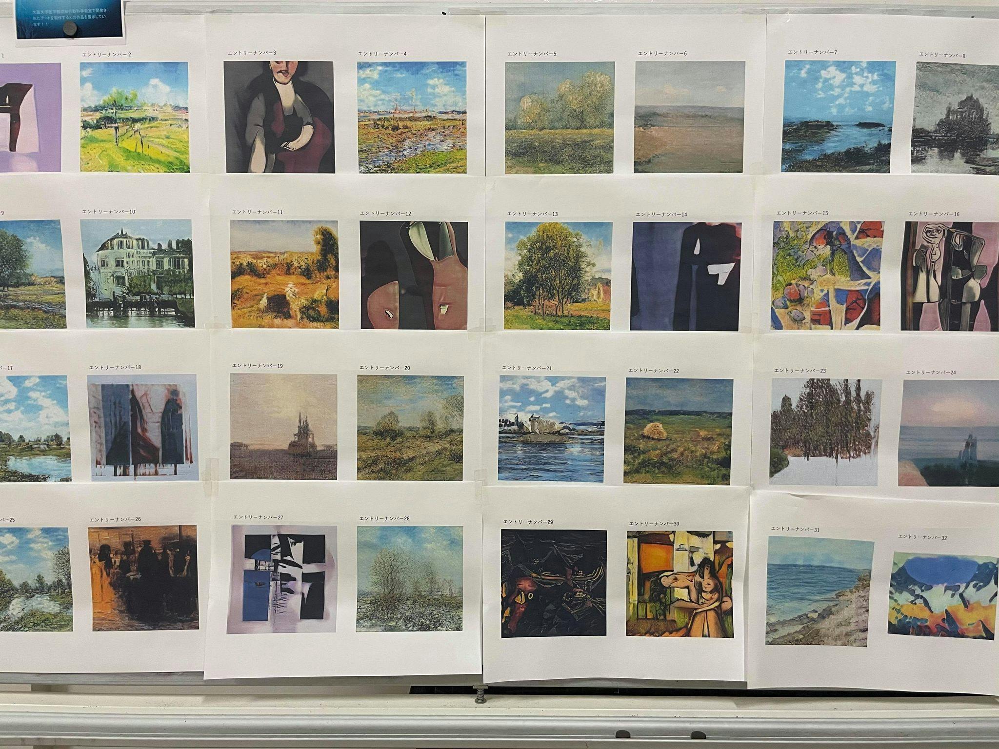 2021/09/29 18:49アート・プログラムin鶴林寺vol.05では、AIアート展示の場所で、AIデモ「GoGAN」をしています。30枚、もしくは100枚の絵を0~100の数字で採点?評点?していき、その数値を元に、最後に自分の感性をAIに移植できます。そして出来上がった絵を、エントリーナンバーをつけて投票しよう!という試みです。誰の感性が一番人気になるのでしょうか。会場だけでなく、ネットからもAIアートを観たり投票もできるのでよろしければ一緒に投票しましょう!ネット投票・閲覧はコチラから今週末は、土曜日にスーマーライブ、村岡ケンイチ似顔絵、日曜日に村岡ケンイチのライブペイントなどイベント盛りだくさんの予定です。 もっと見る