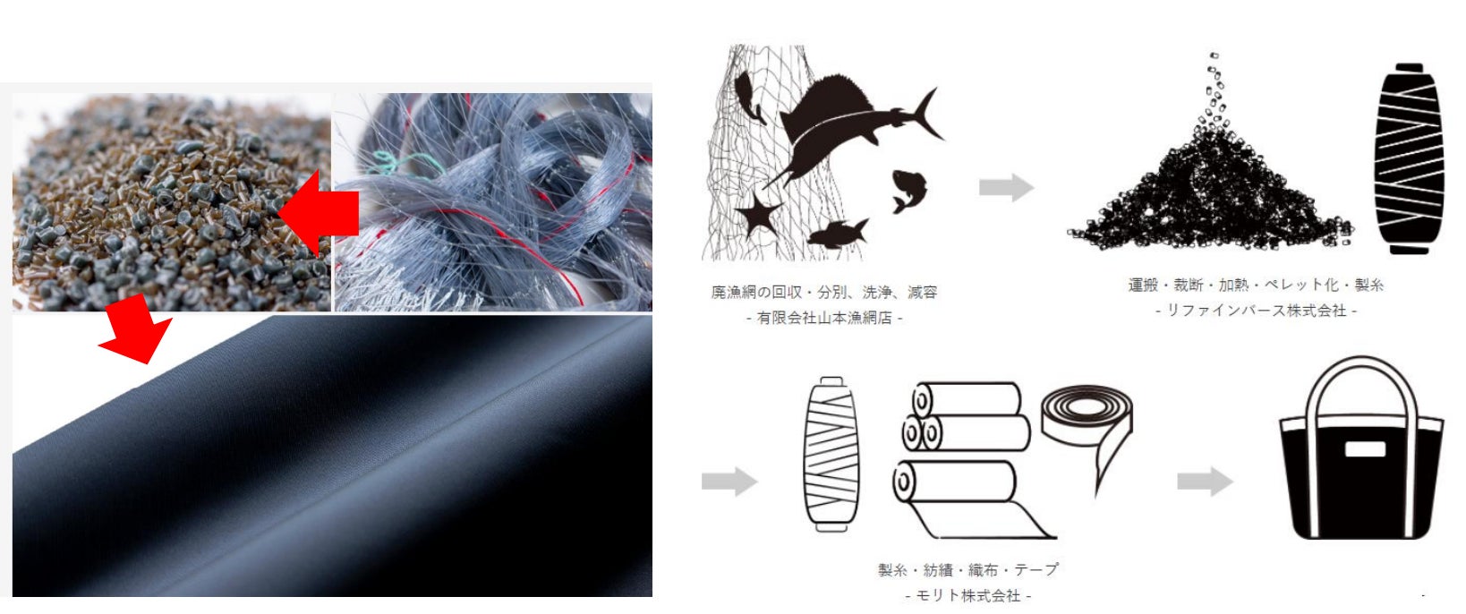 それをリサイクルしたのが廃棄漁網再生の生地です。