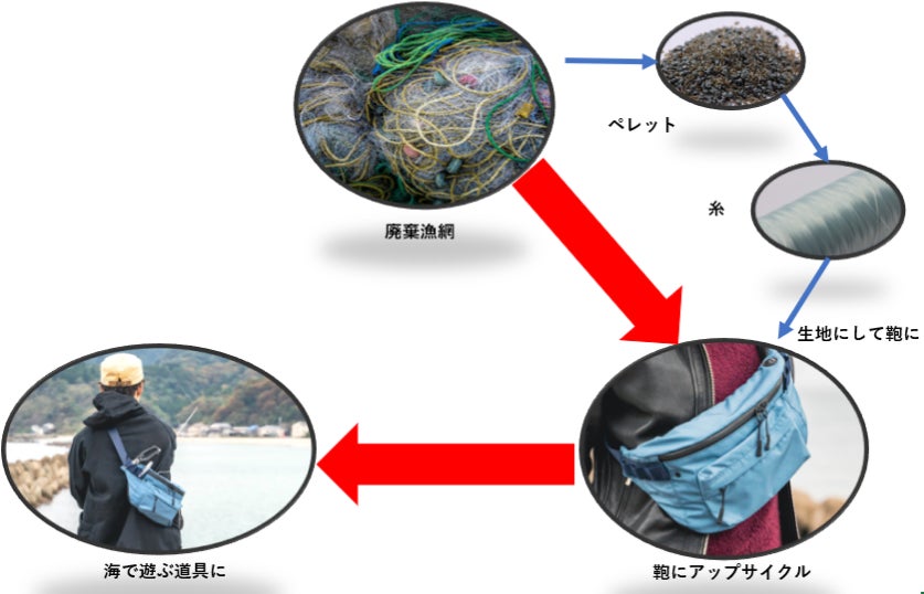 海で出たゴミを、鞄にアップサイクルして、海で遊ぶ人に使ってもらう。
