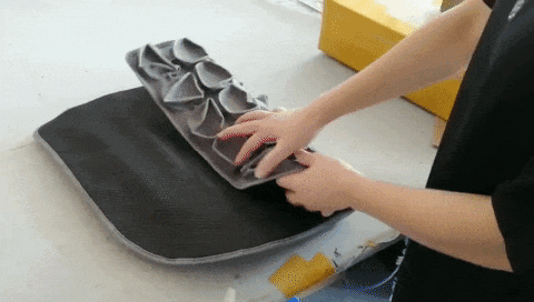 今までの真っ平の表面を、ヒップと太ももの形状に合わせて、全体的のエアセルの高さを調整しました!