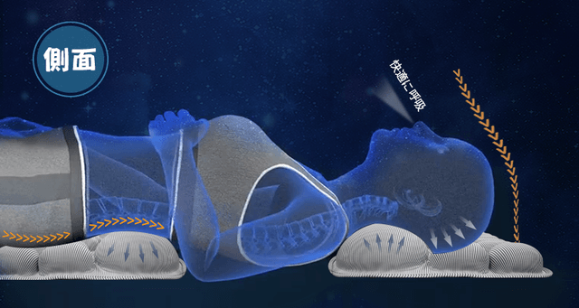 【FITPILLOW】は、首の骨が枕の曲線に沿って睡眠がとれるので、理想的な姿で睡眠をとることができ、同時に呼吸の気道が確保できます!