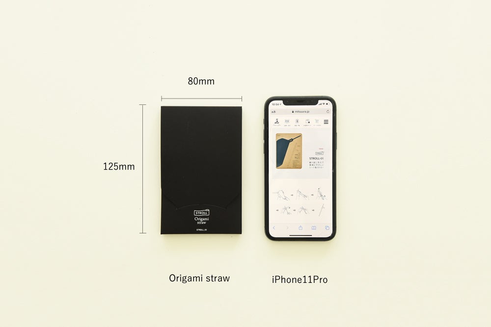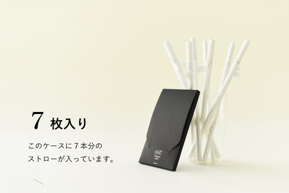 Origami strawは、スマホサイズのケースに入っている折り紙のように折りたたまれたシートを広げて、巻いて、ストローにする、今までになかった新しいスタイルのストロー(※)です。