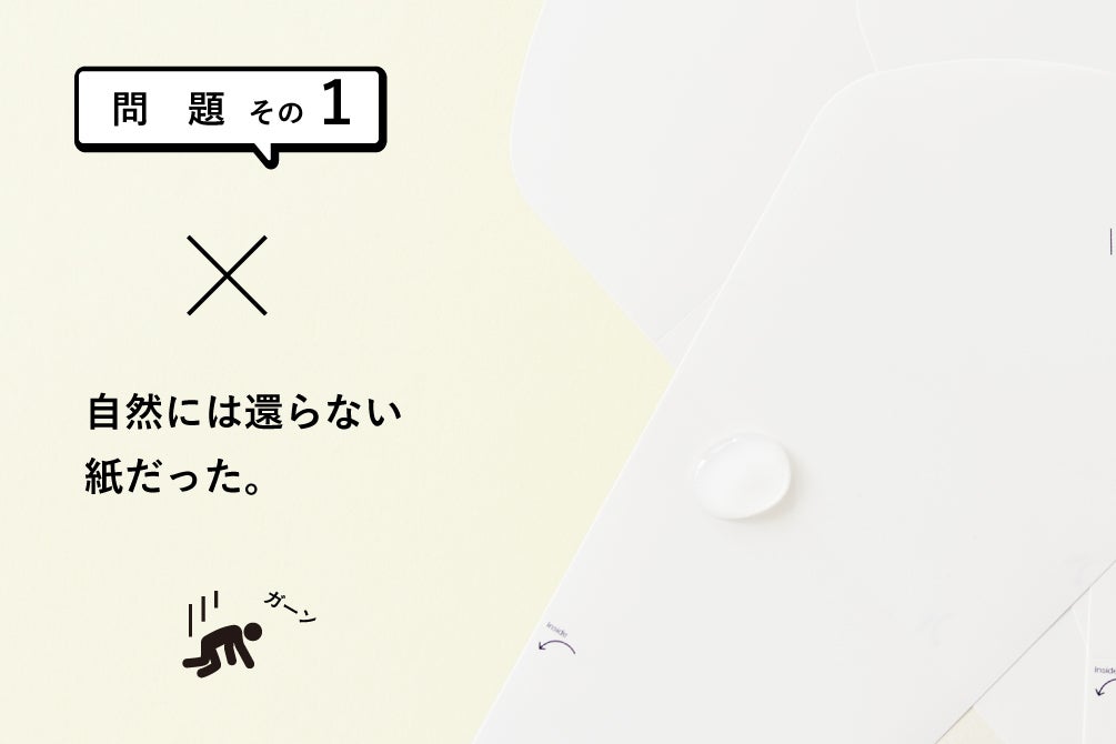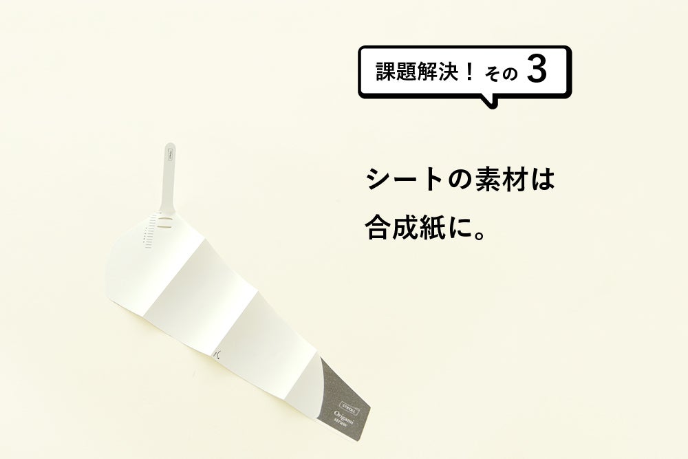 使用している合成紙は、しなやかで紙のようにボールペンで文字を書いたりすることができますが、主原料は炭素と水素からできているポリオレフィンと呼ばれる素材であり、自然に還ることができません。