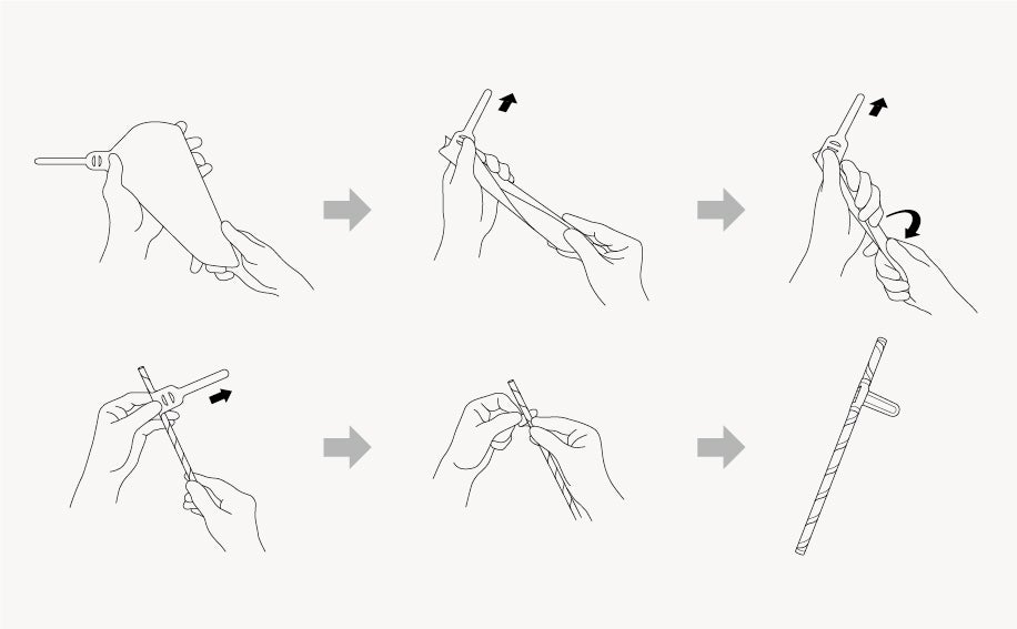 左手は「ベルト部分」を持ち、右手は「持ち手部分」を持ちながらストローを巻いていきます。