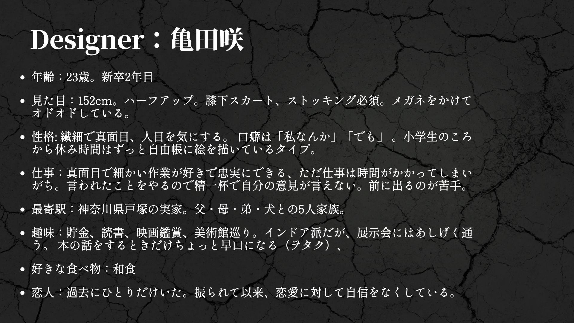 目指すのは、畑違いの前田デザイン室だからこそ作る意味がある、前田デザイン室ならではの小説です。結局ハッピーエンドになる展開や、魅力的なキャラクター設定を避けた、とことんリアルな小説をつくります。