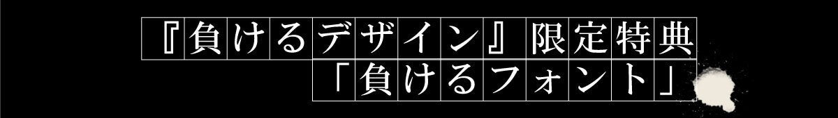 『勝てるデザイン』の初版限定特典で話題となった「勝てるフォント」の『負けるデザイン』版、「負けるフォント」がすべてのリターンに付いてきます!勝てるフォントと同じく、完全オリジナルフォントで商用利用可能なフォントです。