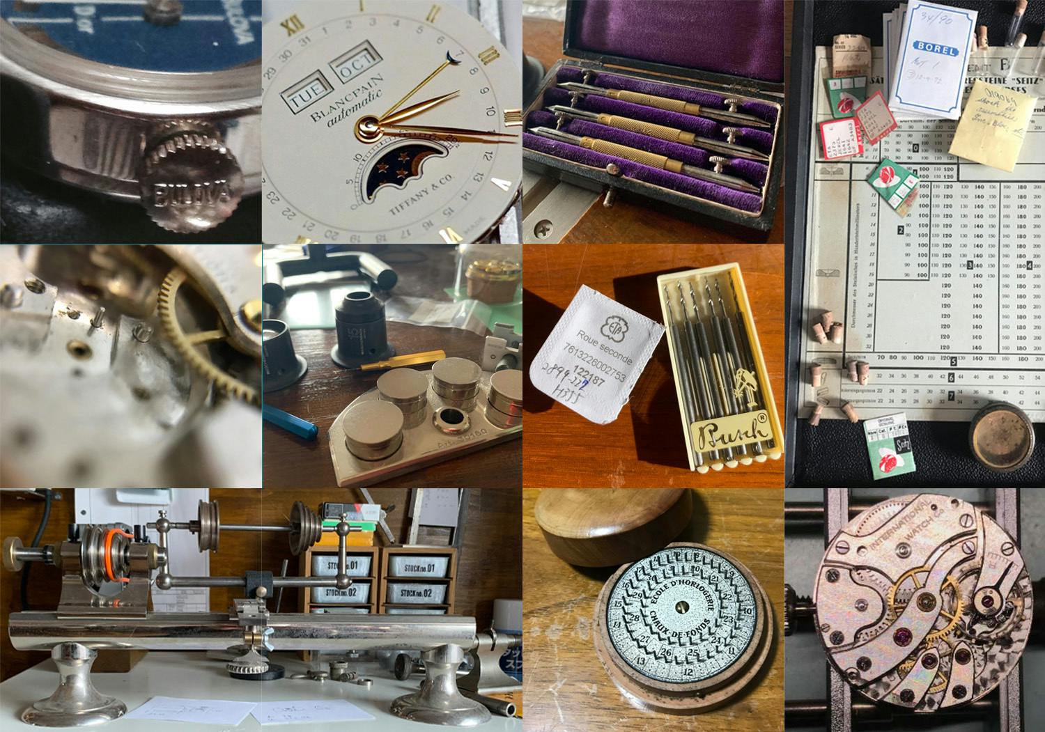 初めまして。どこかで時計を通じご縁が既にある方もこんにちは。小生、30年越えの広告屋。画家に対し画商の役割を担う事が生業。趣味で始めた時計修理を学びたく、時計メーカーや修理会社。大手から個人店まで、沢山の工房にお邪魔させて頂き、沢山の職人さんにもお会いさせて頂いた中、博物館所有クラスの値段が付けられない時計、著名な方にお預かりしているという一点で驚く程の高額品。何に使うのか判らない工具、英語で書かれた古い書物や箱が所狭しと並ぶ、セキュリティ万全のガチ工房。そこが師匠を始め、先輩達との出会いの場でした。そこに経営者の言い値の授業料を払い、合鍵を300万で借り(返却すると返金)工具の使い方、工具作り・メンテナンス、パーツ作り、クロノグラフのOH迄、学ばせて頂きました。