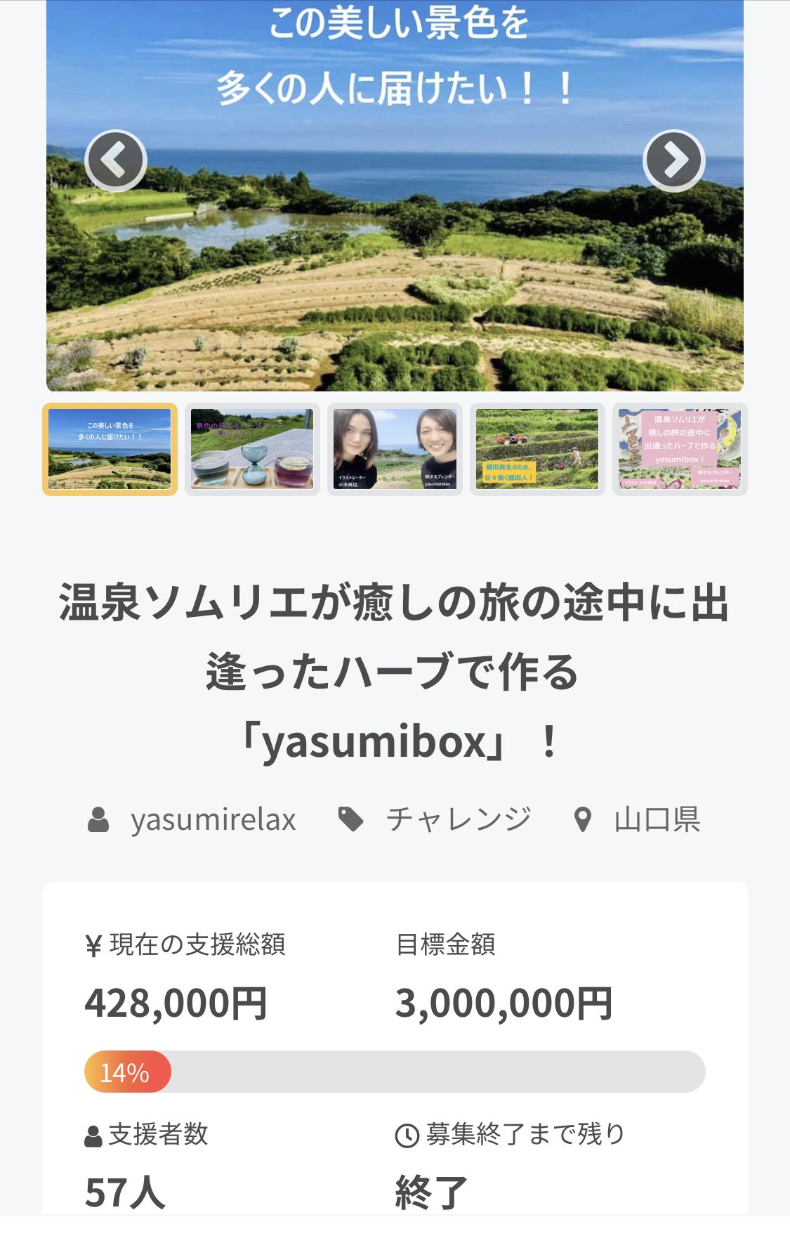 2021/12/18 11:37\クラウドファンディング終了/棚田の花段に出会って約一年。この美しい景色と活動に惚れ込んだ私。ここで育ったハーブでハーブティーを作りたいという想いがようやく形になりました!資金も実績もない私。初めてのクラウドファンディング。ゼロから始めることの大変さ。不安や課題山積みのスタートでしたが、最後まで諦めず続けられたのは、私の話に耳を傾け、共感してくれる人がいたから。目標金額には達しませんでしたが、クラウドファンディングをやって本当に良かったと思います。共感し、支援していただいた皆様、本当にありがとうございました!!お届けまで、しばらくお待ちください!まごころ込めてお届けします(^^)/ もっと見る