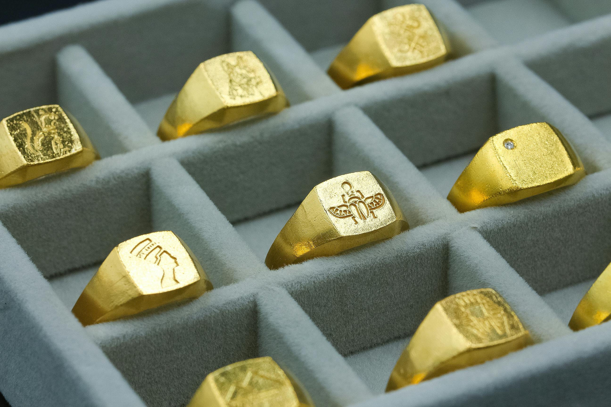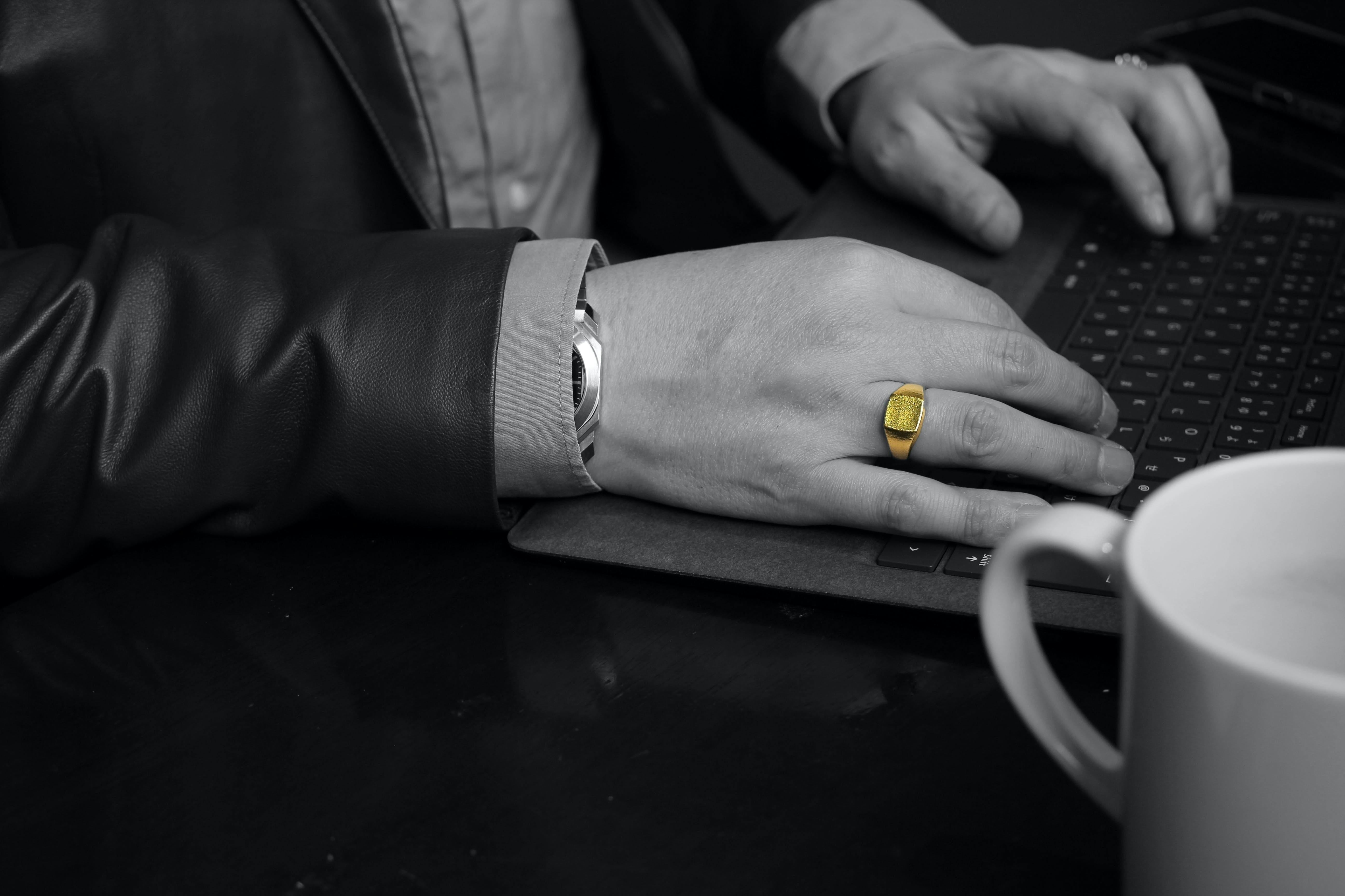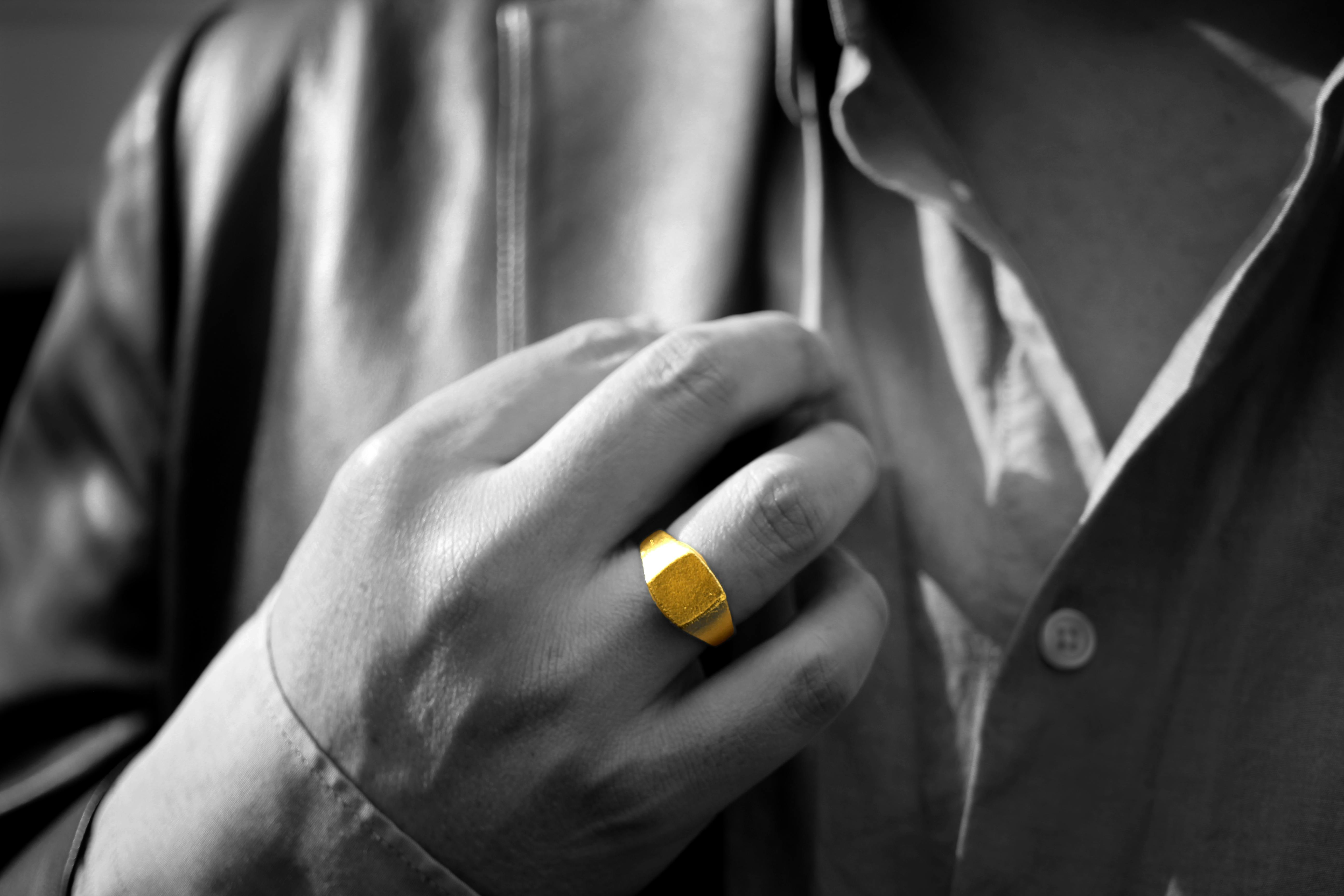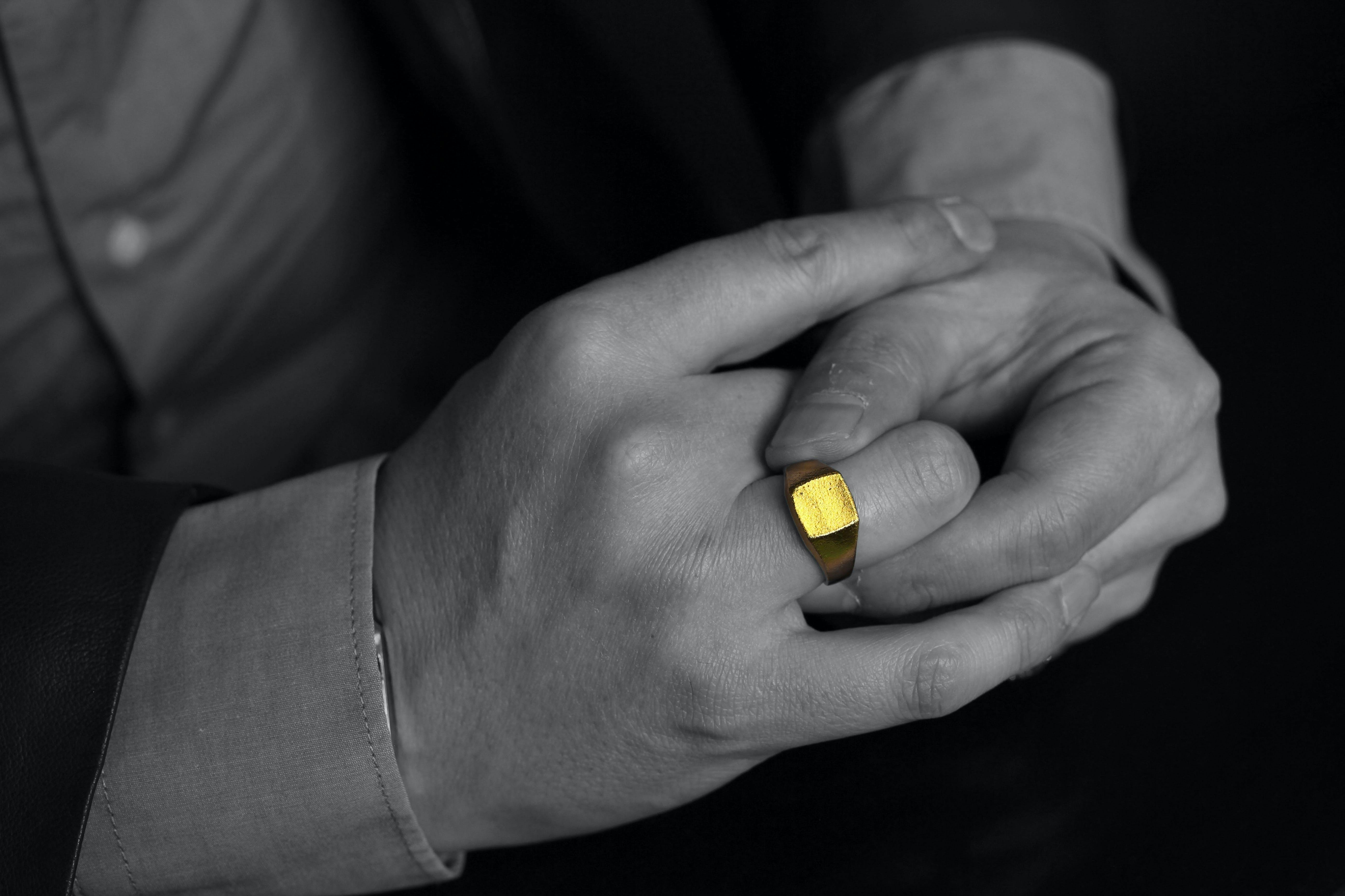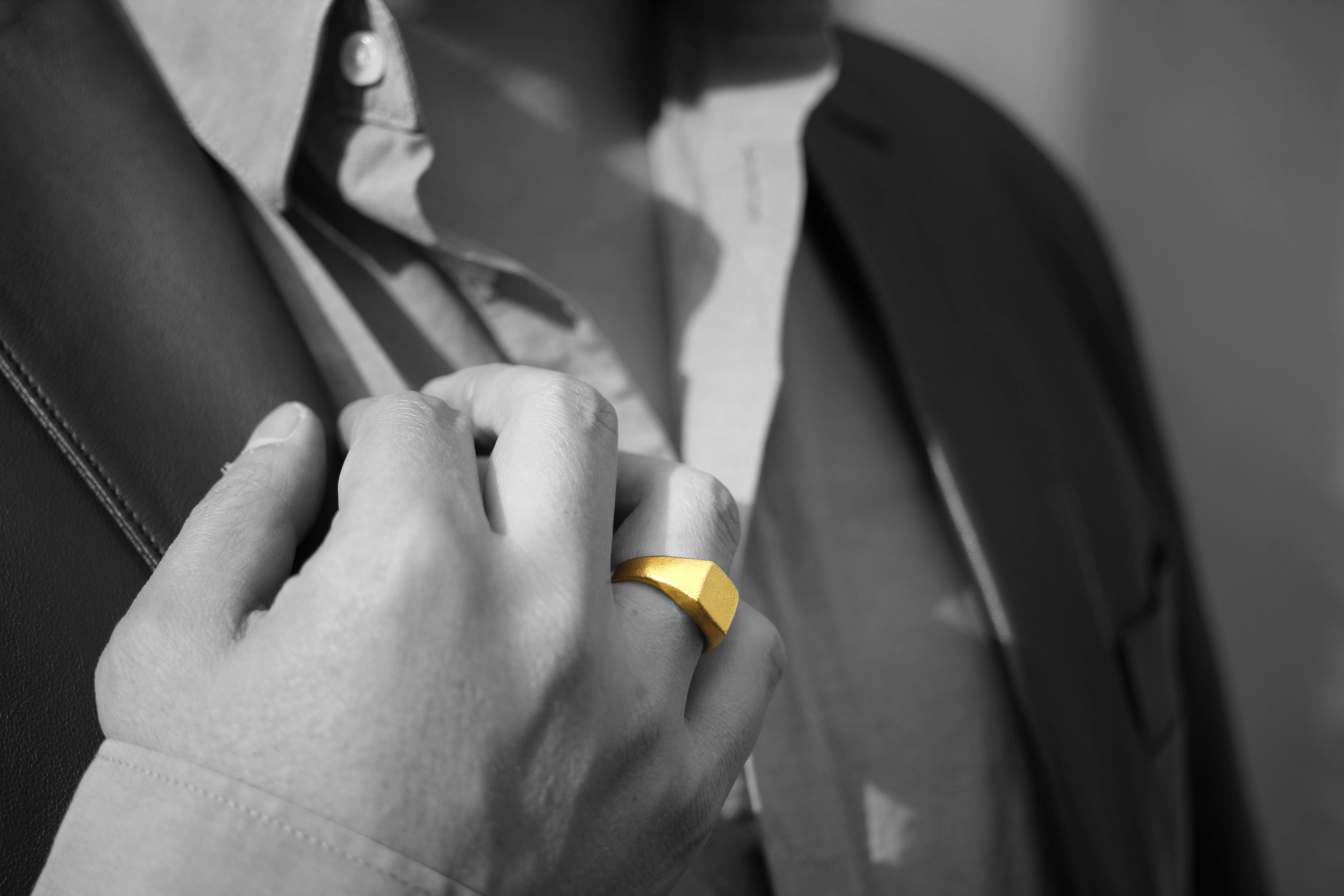 そこで私たちは男性も品よくゴールドのジュエリーを身に着けられるよう本物の純金にこだわって、最高に品のある現代のシグネットリングを完成させました。すべて国内、自社製造です。