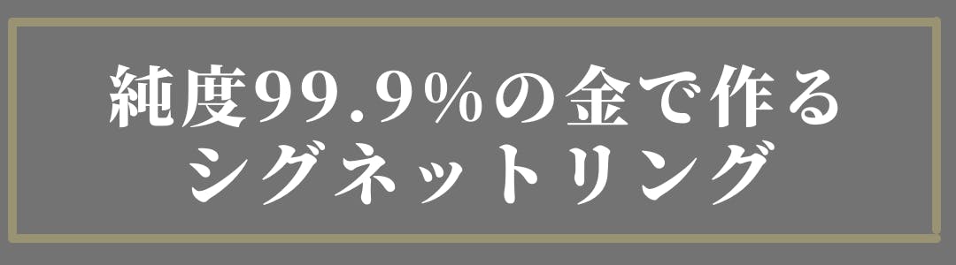 純金とは純度99.9%以上の金を表します。本来はインゴット(金塊)や金貨などの資産を目的に使用される事が多いのですが、高貴さを醸し出す素材としてこれ以上のものはありません。品の良いリングを作るために素材も本物にこだわりました。純金ならではの重量感を感じてください。