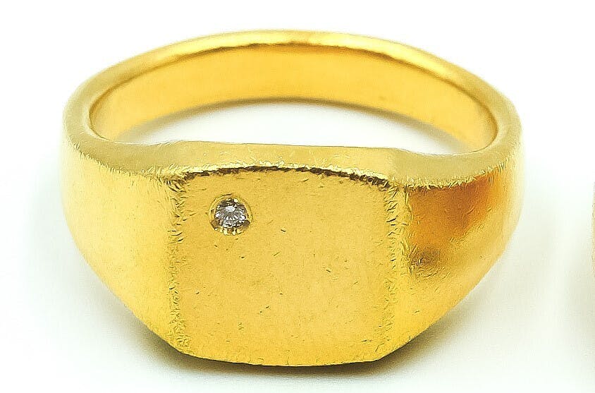 純金K24シグネットリング 天然ダイヤモンド付