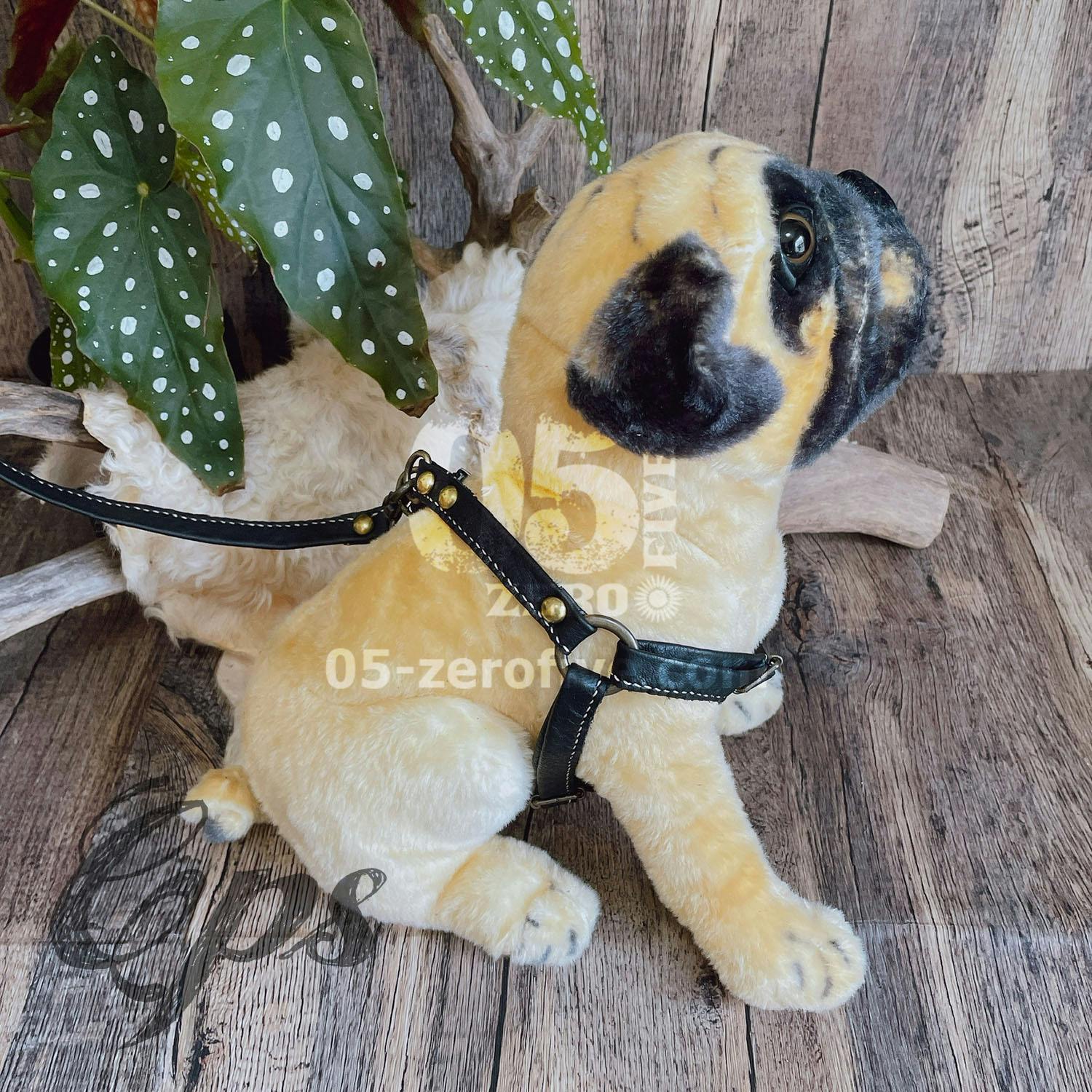 《仕様》前足にくぐらせて背中で止めるタイプ。リードは2つのD管をナスカンで引っ掛けるしっかりタイプ。