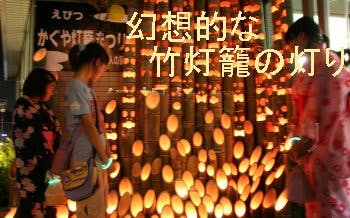 名前の由来どおり、青々とした竹からかぐや姫が顔をのぞかせそうな美しい竹灯篭や、小学生たちが好きな絵を描いた紙灯籠などが、季節によってホタルが舞い飛ぶきれいな矢矧川の川面に映って、幻想的な情景を作り出しています。
