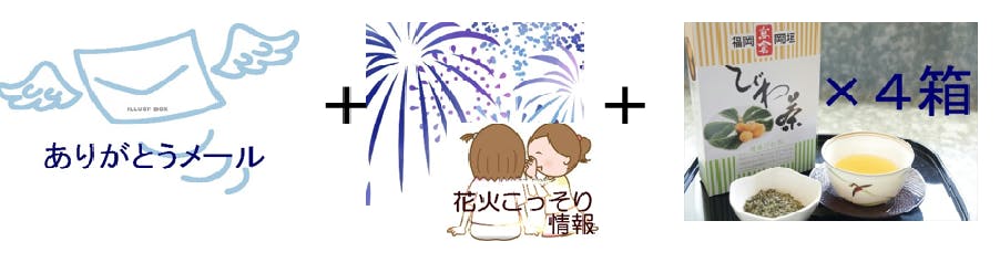 コロナ応援メッセージのプロジェクトですから、できるだけ花火にお金を回したいと考え、そこで思いついたのが「こっそり花火情報」と、地元岡垣町民に愛されている「高倉びわ茶」の提供です。