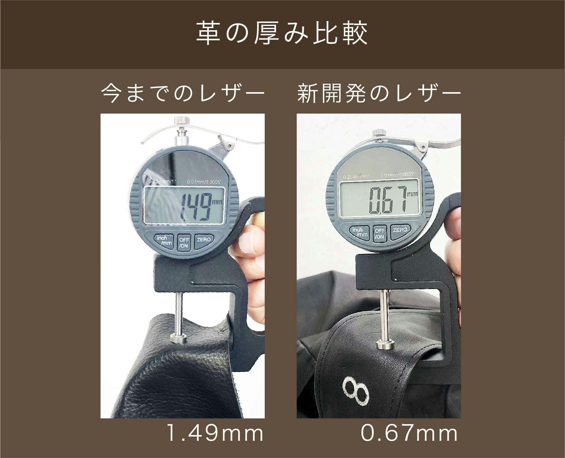 従来の半分の軽量レザー(※自社従来レザー)