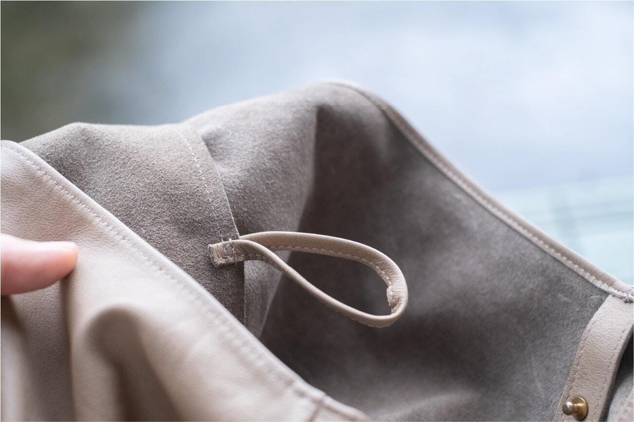 袋口に留め具のないトートバッグなどを持ち歩くと「中が丸見えでイヤ」だと思うことはありませんか?このウォッシャブルレザーバッグは留め具付きで、中身が見えない工夫がしてあります。