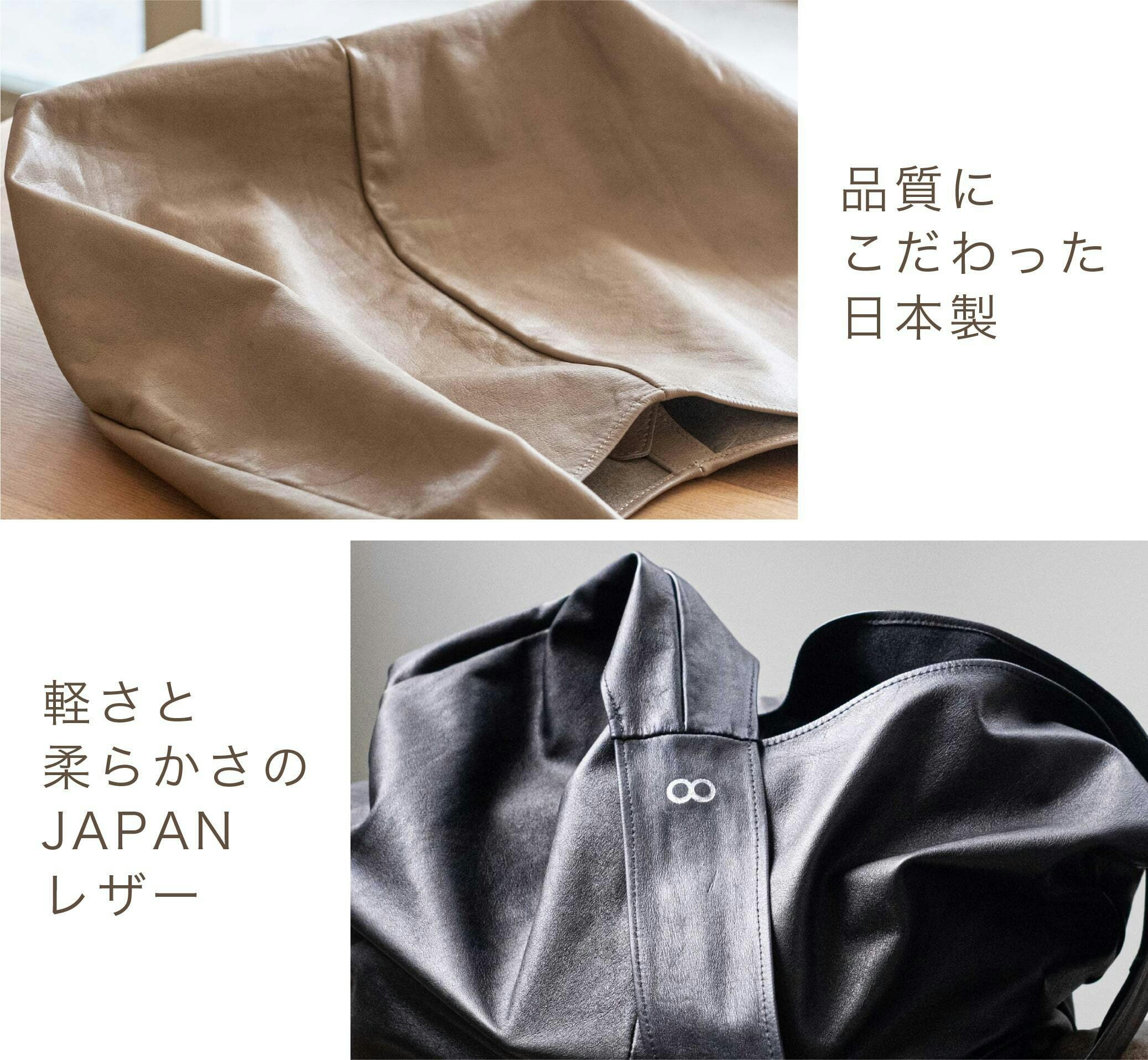 私たちが作品を作るとき「日本製」と「JAPANレザー」にこだわっています。私たちの想いが共有出来ること、そして細やかな品質管理の目が行き届くのが「日本製」の大きな特徴です。そして軽さと柔らかさにこだわった made in japanレザー。