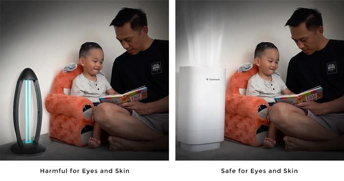 Clean-techは、人が居る場所で使用できる空気除菌機です。病院で採用されている大型装置や目や皮膚に健康リスクを伴うようなUV-Cデバイスとは異なり、弊社の製品では全ての処理が装置の中で行われます。紫外線が外部へ漏れないため、ご家庭でもオフィスでも安心してご活用いただけます。