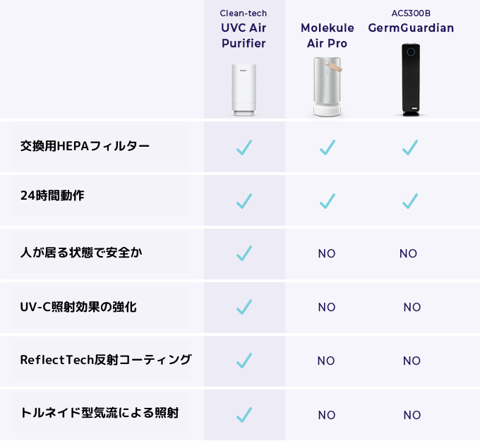 「Clean-tech社のUV-C空気清浄機の選択肢があるのに、100万円をかけて別の装置を追加導入する必要はないでしょう」