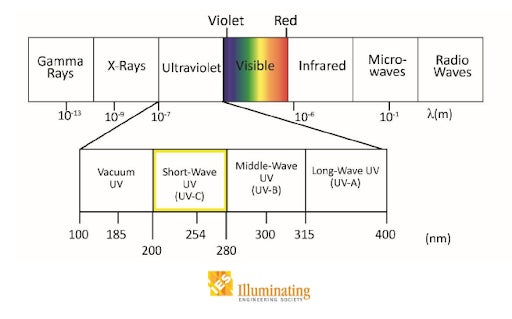 紫外線の中で、200~280um の波長がUV-Cとして分類され、もっとも高い除菌効果があります(参考元:ies.org)